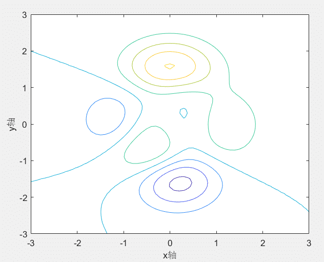% 图形美化 xlabel('x 轴'); % x 轴标签 ylabel('y 轴'); % y 轴标签 title('复杂函数的等高线图'); % 图表标题 colorbar; % 显示颜色条(如果使用 contourf)